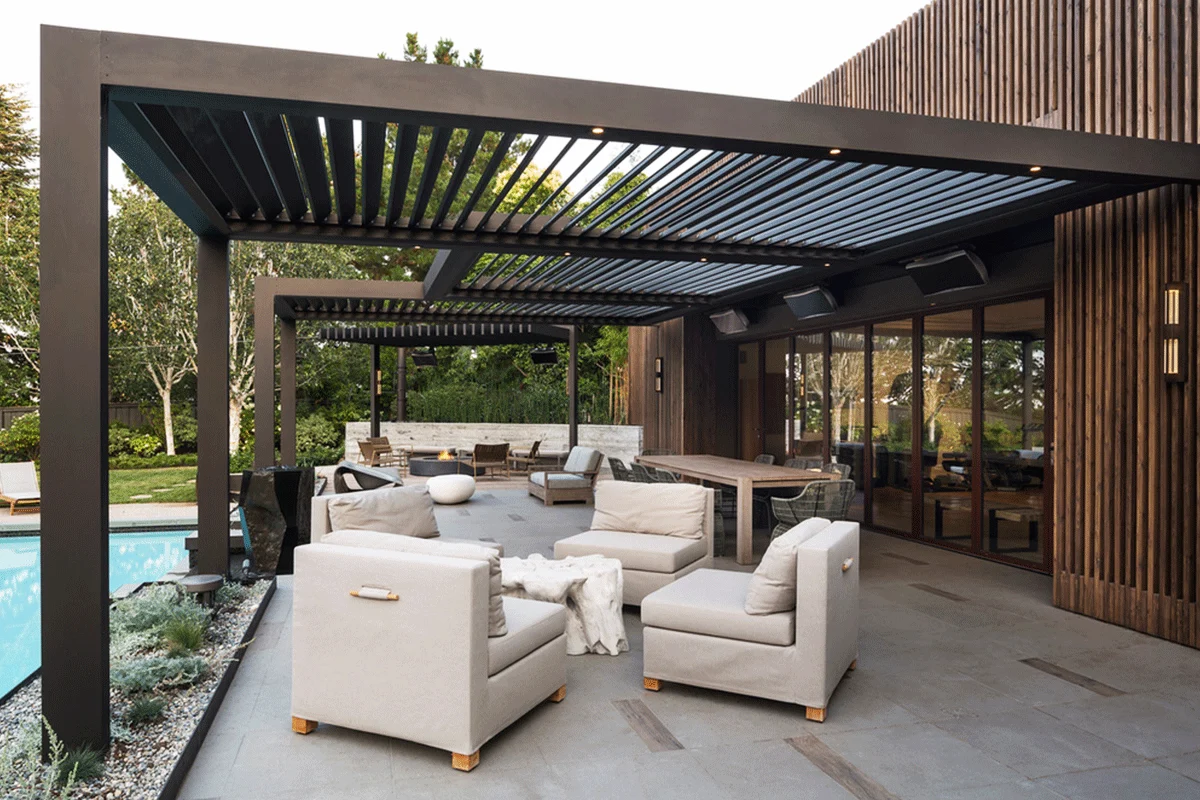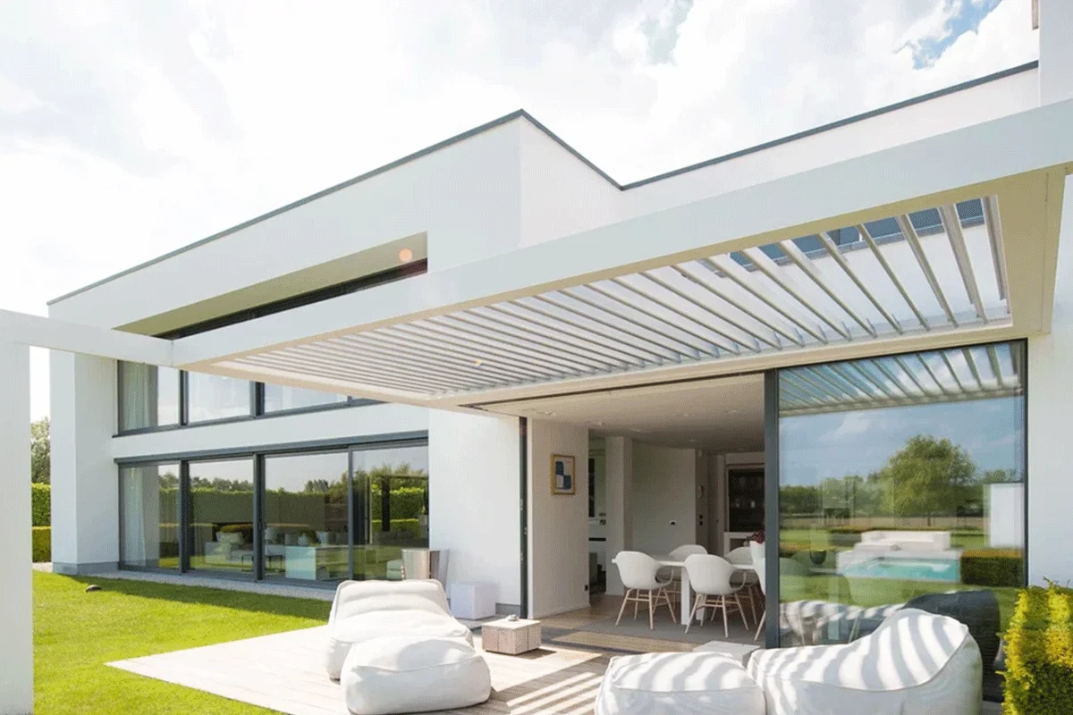 Premium LouvreTec opening roof system with sleek engineering, weather protection, and multiple finish options.