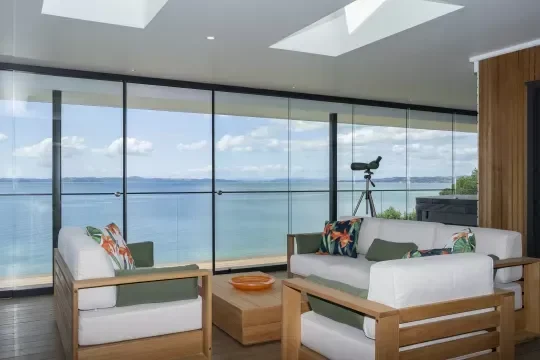 Glass Doors are floor mounted, with an integrated floor rail that ensures that your living space remains unobstructed, giving you more room to relax and entertain.