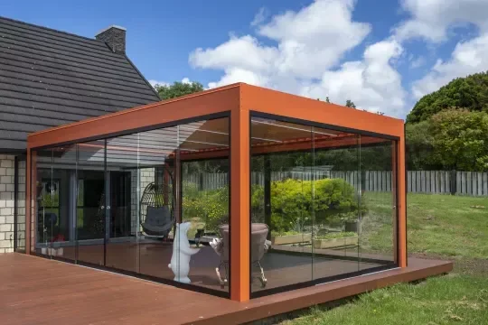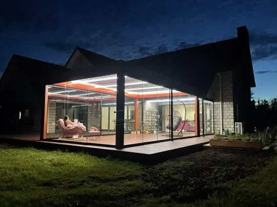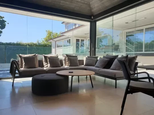 A wall enclosure creates a more defined and protected patio space with added structure, privacy, and separation from the elements. It is ideal for homeowners seeking a more permanent enclosure feel.